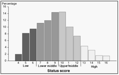 Although the four dimensions for theoretical reasons are treated separately, in the real world they will occur in a multitude of interdependent combinations, constituting complex life situations. Two assumptions may be made in order not to over- or underestimate good or bad situations in the following analysis:10 First, we assume that a bad situation in one field may be compensated by a good situation in another: A person with two lower scores on the four indicators is worse off than a person with one low score. Second, as long as differences in quality or attractiveness of the four indicators (as opposed to the status categorization within them) cannot be judged, they simply are accorded equal weight: A low score according to one indicator, may be offset by a good situation in another. In other words, we allow good and bad situations to outbalance each other.