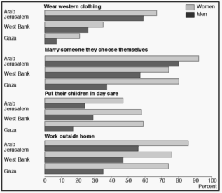 among the youngest age group of West Bank Palestinians. Whereas 31% of men