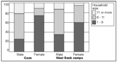 of head of household. Percentage of all households in respective groups Because of their small size and low labour activity, many female headed households to a large extent fall outside the private "social security system" formed by large households on the micro level. Instead they must often rely on public transfers for survival. In female-headed households in Gaza, the proportions of labour and non-labour income types having "main importance" are 29% and 75% respectively, whereas in male-headed households in Gaza, the corresponding proportions are 75% and 28%. Non-labour income from public sources like UNRWA support, social benefits and zaqat money are of "main importance" to only 12% of Gaza's male-headed households, but to as many as 47% of its female-headed households. Summing up household income types and employment We have found no reason to reject the "family employment network" hypothesis, which suggests that individuals facing employment problems rely primarily on the labour activity of other household members for economic support. In households with one or more unemployed and "discouraged workers", we found no indications that non-labour income from public sources is more important than in other households, nor any sign that these households score lower on the index for household possession of consumer durables. If the "family employment network" hypothesis holds, the presence of other income earners in the households is of critical importance for the economic welfare of those who lose employment. This makes large households less dependent on public support than small households, and place them economically above average as measured by the index for household possession of consumer durables. Large households seem to form a private "social security system" on the micro level, offering their members a kind of collective insurance against sudden economic shocks. The greater chance that at least one household member will have work, may help to explain why worker reservation wages do not seem to have fallen sharply after the border closure. The "family employment network" hypothesis cannot, of course, apply to households where no members have employment. Because of their small size and low labour activity, households headed by women tend to fall outside the micro level "social security system" described above. Many of these households rely on public transfers for survival.